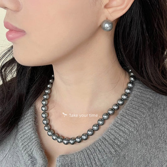 C廠【4917】施家玻璃珍珠好品質氣質灰色項鍊電鍍14K保色很好質感毛衣鏈 頸鍊 24.09-4