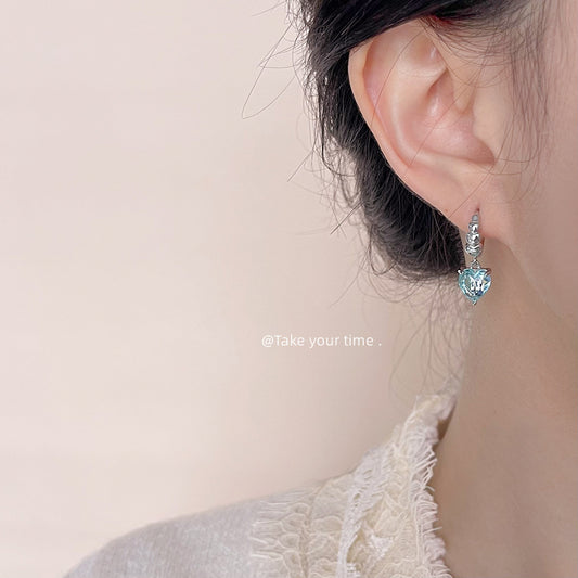 C廠【4907】優雅氣質清新甜美海藍寶色愛心鋯石耳環個性甜酷通勤簡約耳飾 24.09-4