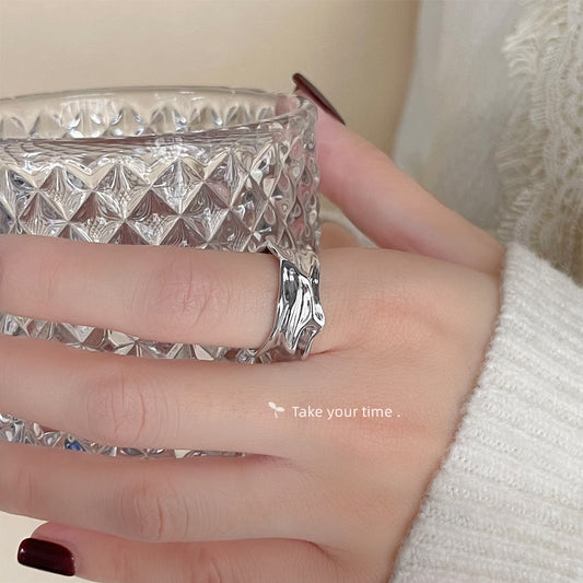 C廠【4908】莫比烏斯電鍍真白金色開口可調個性冷淡風金屬液態戒指食指戒女 24.09-4