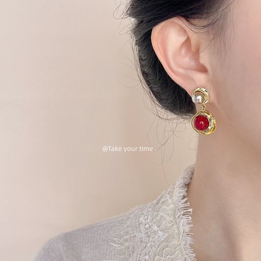 C廠【5010】安可拉紅鍍14K文藝復古圓形幾何長耳環氣質秋冬通勤款耳環 24.10-1