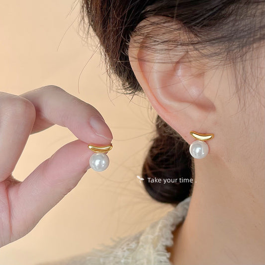 C廠【5033】時尚通勤高級感925銀針鍍14K橢圓幾何珍珠輕奢風耳環耳飾批發 24.10-4