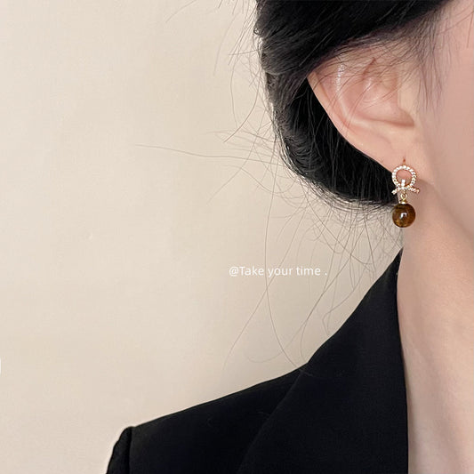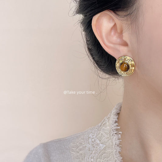 C廠【5005】虎眼石美拉德鍍14K秋冬新款耳環女高級感圓形幾何耳環飾品女 24.12-3