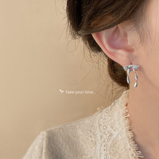 C廠【5013】蝴蝶結飄帶925銀針簡約高級感通勤耳環 氣質新款耳環耳環貨源 24.11-2