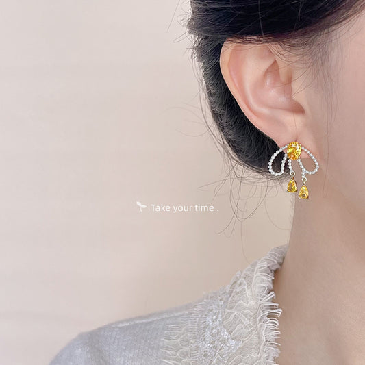 C廠【5004】鑲嵌鋯石鍍14K 925銀針珍珠蝴蝶結耳飾女氣質簡約時尚復古耳環 25.09-3