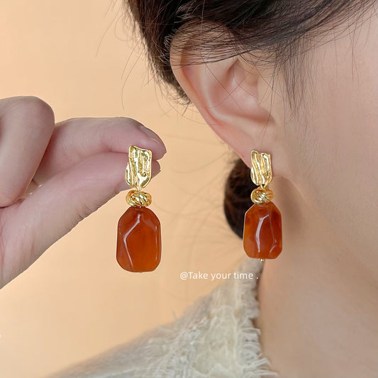 C廠【5028】安可拉紅2024年撞色新款鍍14K方形幾何港風復古耳環耳環批發 24.10-4