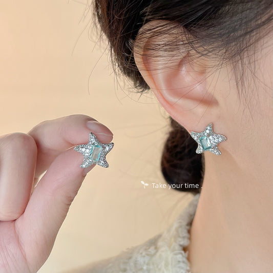 C廠【5035】微鑲鋯石海星時尚通勤輕奢風高級感鍍14K耳飾原創耳環飾品女 24.10-4