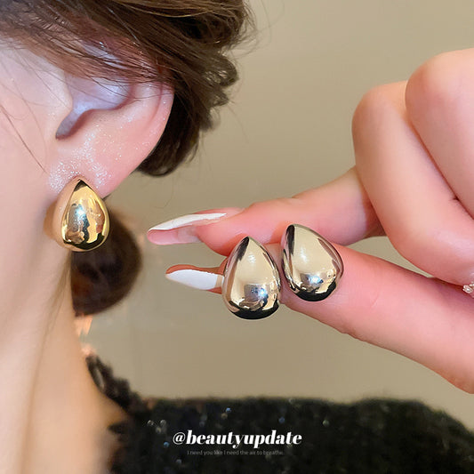 A廠【HE22734】真金電鍍925銀針簡約亮面水滴耳環網紅輕奢風耳環ins風精緻時尚耳飾 24.10-1