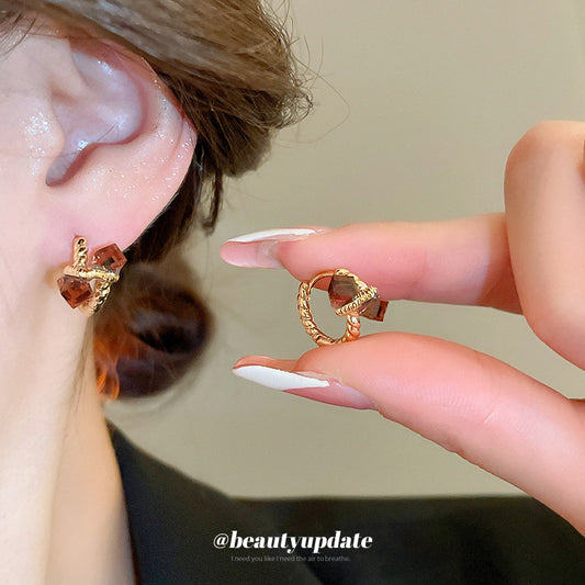 A廠【HE22740】925銀針金屬風纏繞鑲鑽耳環不規則個性輕奢氣質耳環新品簡約時尚耳環 24.10-2