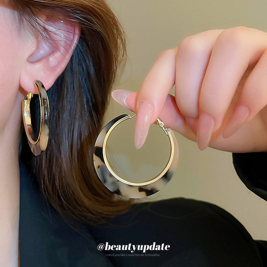 A廠【HE22567】網紅同款奶咖豹紋圓圈耳環2024新款日常通勤耳圈復古氣質時尚耳環 24.09-4