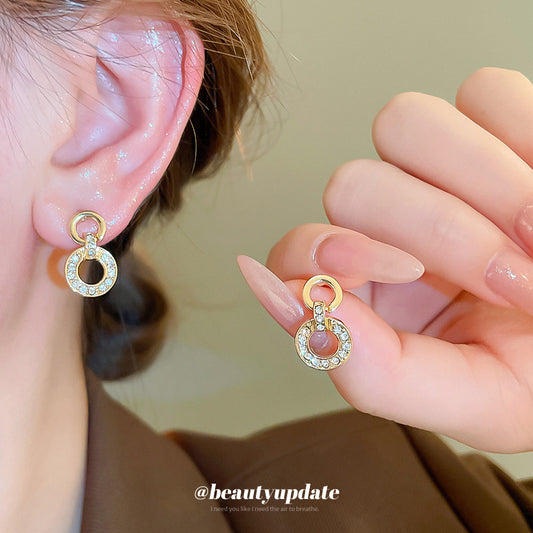 A廠【HE22564】925銀針新品高級感鑲鑽雙圈互扣耳環潮流設計感耳墜日常通勤耳環 24.09-4