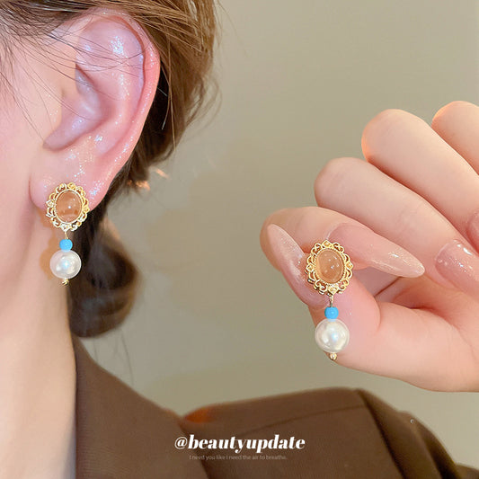 A廠【HE22573】真金電鍍925銀針人造珍珠款花朵耳環氛圍感耳墜宮廷風復古高級感耳飾 24.09-4