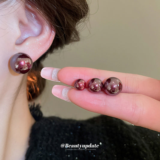 A廠【HE22751】925銀針簡約安可拉紅圓球珍珠耳環時尚氣質耳環精緻簡約高級感耳飾女 24.10-2