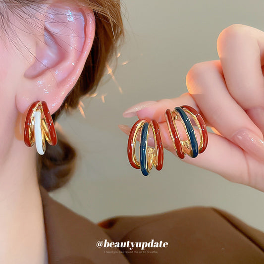 A廠【HE22583】925銀針滴油撞擊色鏤空耳環耳環簡約時尚氣質耳環港風復古高級感耳飾女 24.09-4