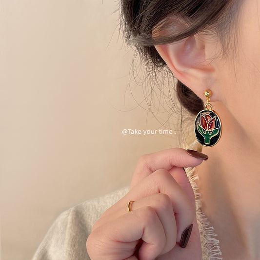 C廠【5109】文藝復古中古風鍍14K法式滴油鬱金香花朵耳環女 義烏飾品耳環 24.11-2