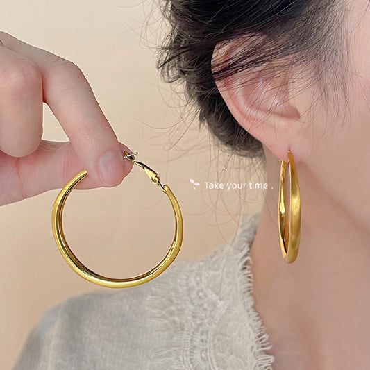 C廠【5086】拉絲~時尚通勤電鍍14K簡約大圈高級感圓耳圈女氣質耳環耳環 24.11-2