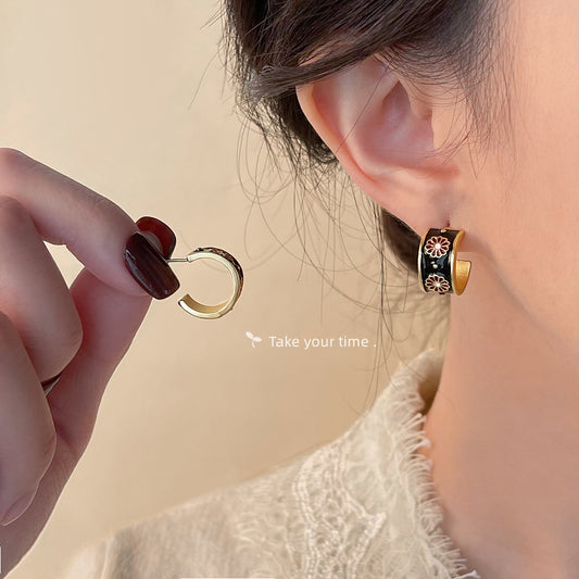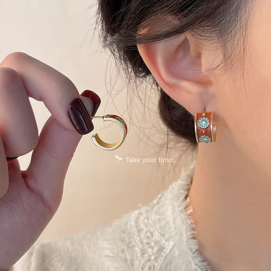 C廠【5110】復古日系小雛菊半圓耳環手工琺瑯彩清新甜美高級感百搭耳飾耳環女 24.11-2