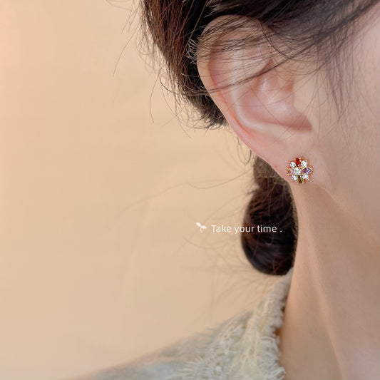 C廠【5044】微鑲鋯石電鍍14K彩色雪花2024年新款耳環耳環 飾品供應鏈 24.10-4