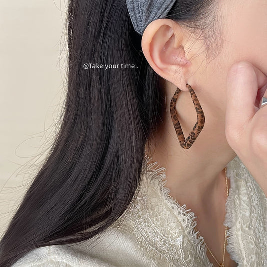 C廠【5113】文藝復古時尚流行豹紋植絨方形幾何氣質高級感耳飾耳環耳圈女 24.11-2
