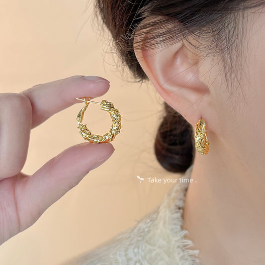 C廠【5047】【升級版】電鍍18K真金加厚圓形幾何麻花時尚通勤高級感耳飾 耳環 24.10-4