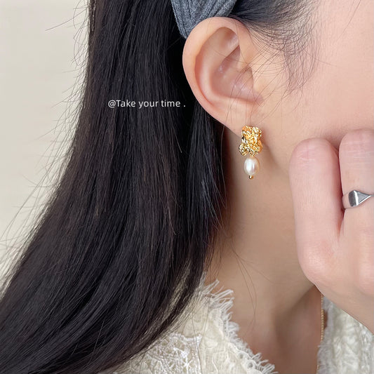 C廠【5081】淡水珍珠~文藝法式復古手工藝設計感不規則異形耳環新款耳環女 24.11-2