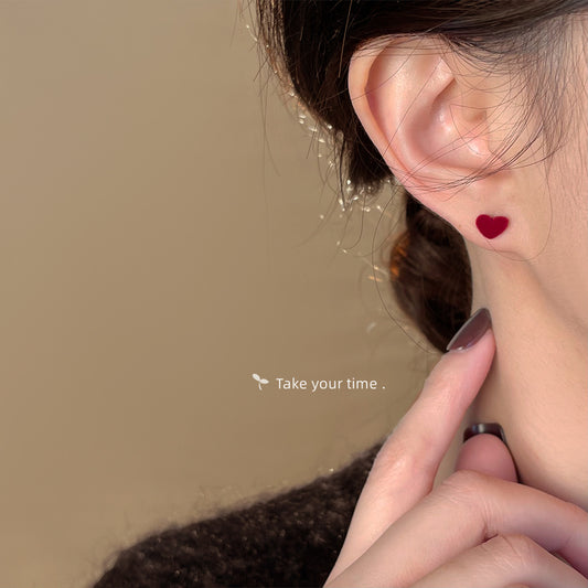 C廠【5076】植絨款迷你小巧愛心耳環女簡約日常通勤秋冬新款耳環飾品 24.11-4