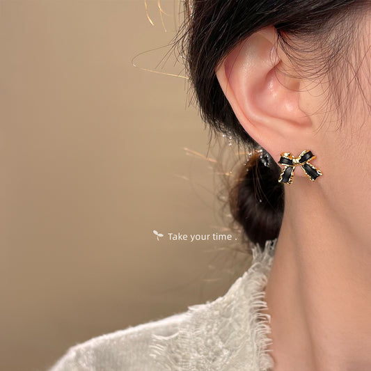 C廠【5056】法式氣質時尚電鍍14K滴油蝴蝶結耳環秋冬耳環小眾設計感飾品耳飾 24.11-3
