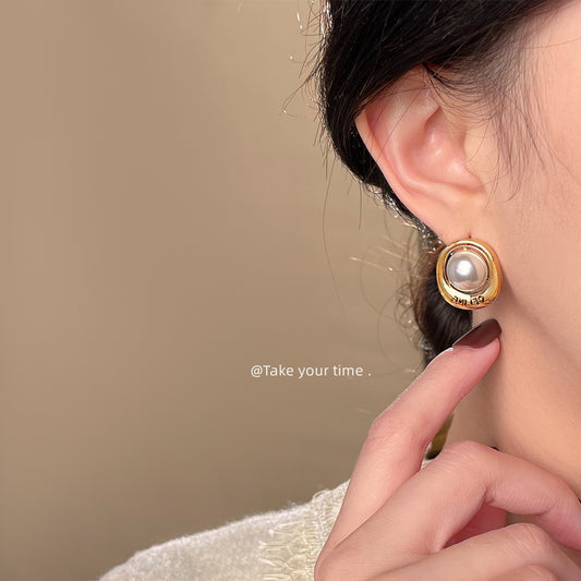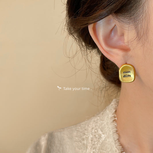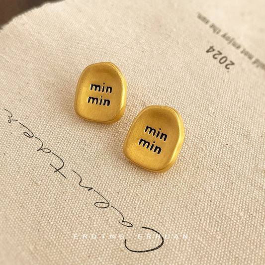 C廠【5120】拉絲質感法式復古輕奢幾何耳環中古風高級感霧面字母設計感耳飾品 25.02-3