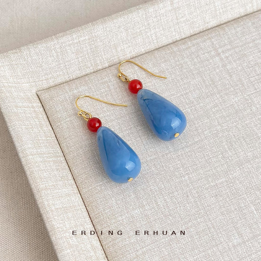 C廠【5139】原創設計~霧霾藍手工藝設計感長款水滴幾何耳飾新款耳環飾品女 24.11-5