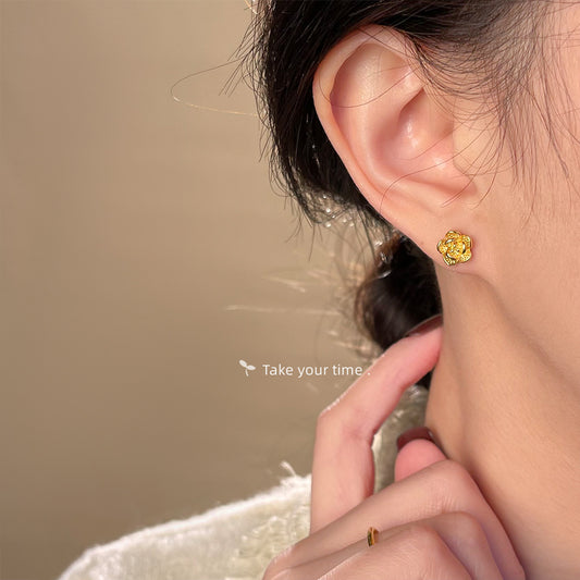 C廠【5149】清新甜美鍍14K立體簡約玫瑰花小巧耳環氣質日常通勤耳環女 24.11-3