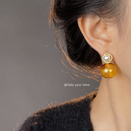 C廠【5282】小眾設計師款氣泡球玻璃耳環 個性ins手工新款耳環飾品女 24.12-2