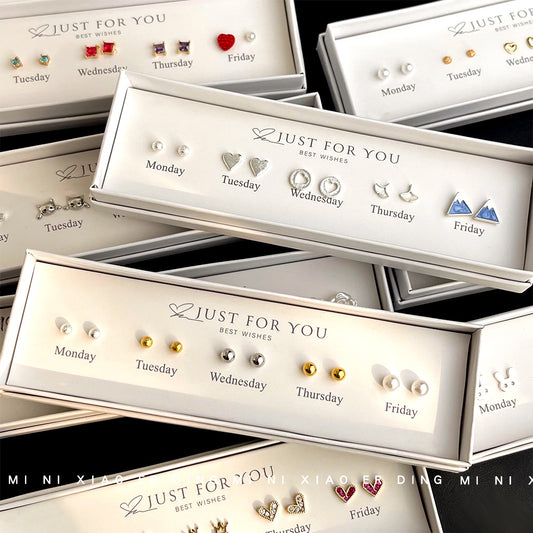 C廠【5237】時尚通勤跨境熱銷組合新款一週耳環新款簡約耳飾品女 24.12-4