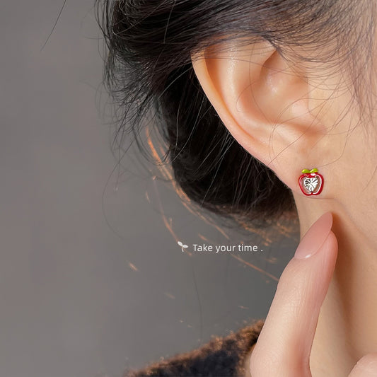 C廠【5279】森系小清新可愛迷你小蘋果耳環甜美日常通勤百搭學生耳飾飾品 24.12-2