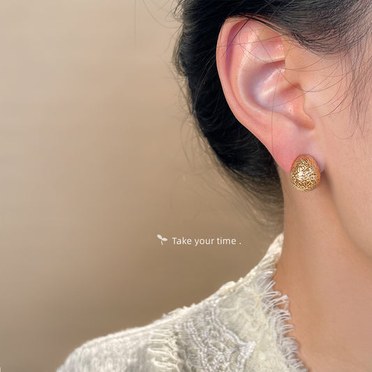 C廠【5246】小金蛋~磨砂肌理感925銀針鍍14K水滴耳環簡約高級感百搭耳飾耳環 24.12-1