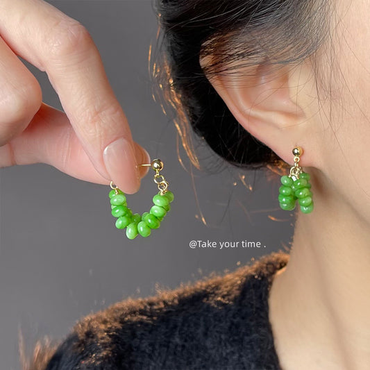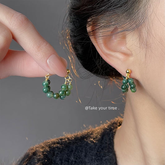 C廠【5406】春款~森系草木綠天然石瑪瑙新中式個性旅遊景點耳環耳環 25.01-1