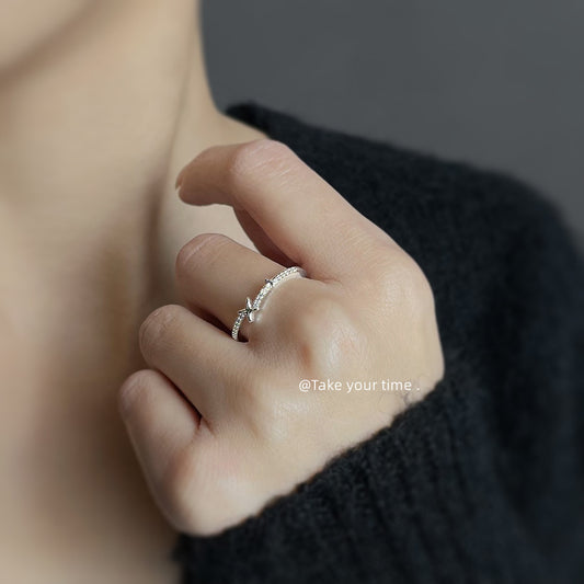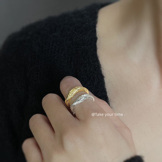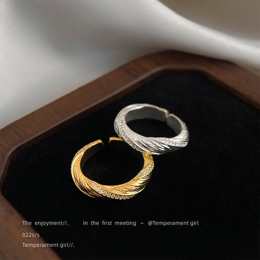 C廠【5420】微鑲鋯石電鍍18K真金紋理感開口可調式戒指高級感通勤戒指食指戒 25.01-1