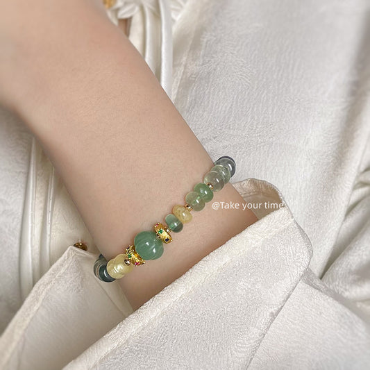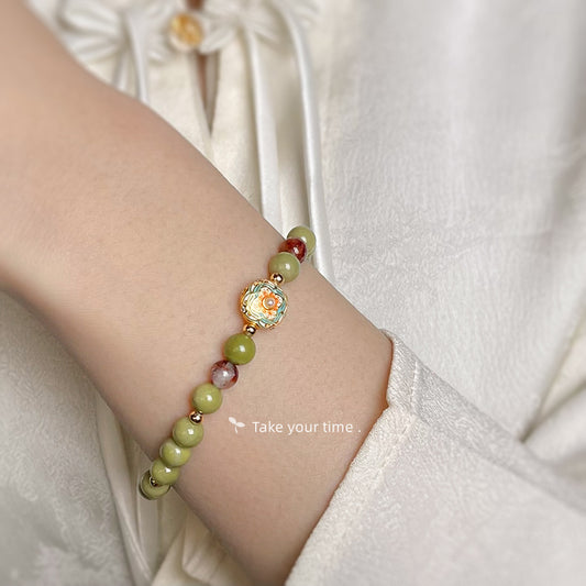C廠【5415】酪梨阿拉善天然石森系清新甜美春季原創琺瑯滴釉彩繪手鍊手飾女 25.01-3