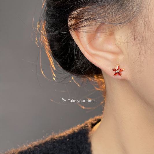 C廠【5431】鑲嵌鋯石安可拉紅氣質簡約高級感花朵耳環時尚通勤耳飾 25.01-2