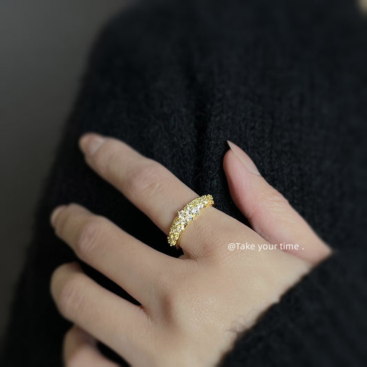 C廠【5420】微鑲鋯石電鍍18K真金紋理感開口可調式戒指高級感通勤戒指食指戒 25.02-3