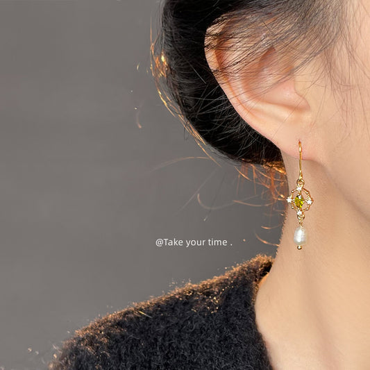 C廠【5409】森系小清新淡水珍珠微鑲鋯石鍍18K手工設計 長款簡約耳環耳環 25.01-1