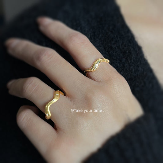C廠【5426】芒星微鑲鋯石鍍18K真金指環拉絲質感不規則開口可調戒指 食指戒 25.01-3