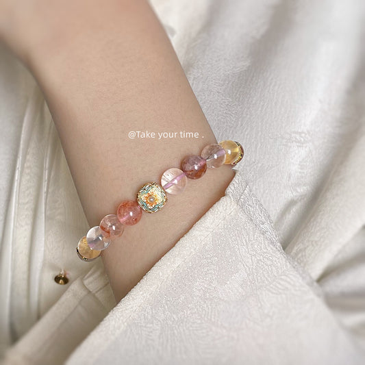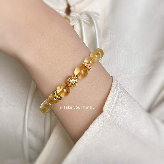 C廠【5416】高品金髮晶天然石新中式復古黃髮晶原創手鍊文藝氣質原創手工手飾 25.01-3