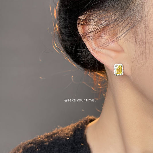 C廠【5432】微鑲鋯石925銀針長方形幾何時尚通勤高級感輕奢風小耳環氣質耳飾 25.01-2