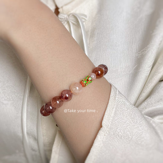 C廠【5418】紅膠花天然石水晶招桃花系列手鍊高級感生日禮物手飾輕奢手串 25.01-1