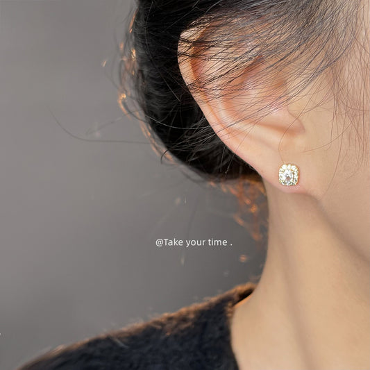 C廠【5428】迷你版微鑲鋯石方形幾何簡約時尚通勤高級感學生耳環耳環飾品 25.01-2