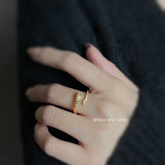 C廠【5425】微鑲鋯石靈蛇戒指 電鍍18K高品質保色開口可調指環高級感食指戒 25.01-3