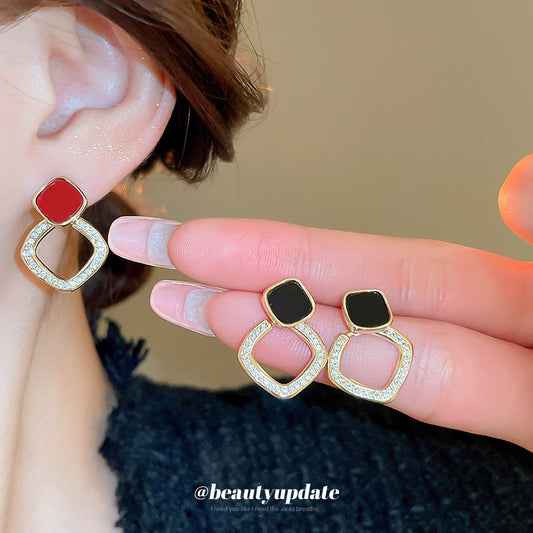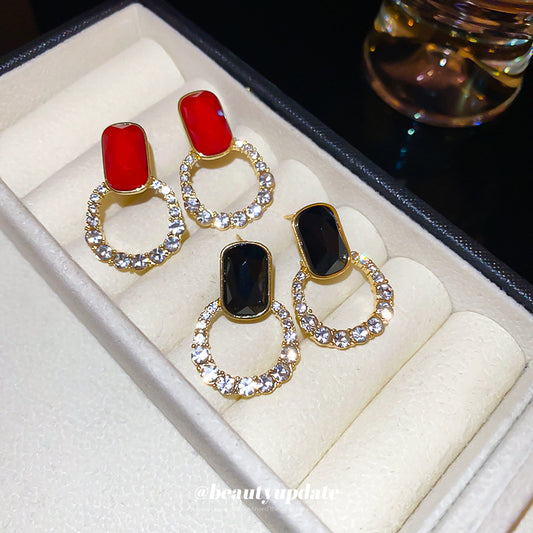 A廠【HE22799】真金電鍍925銀針安可拉紅鑲鑽幾何耳環輕奢時尚耳環精緻高級感耳飾女 24.10-2