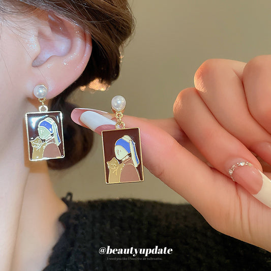 A廠【HE22756】925銀針戴珍珠耳環的少女法式復古油畫耳環耳墜珍珠款氛圍感耳飾 24.10-2