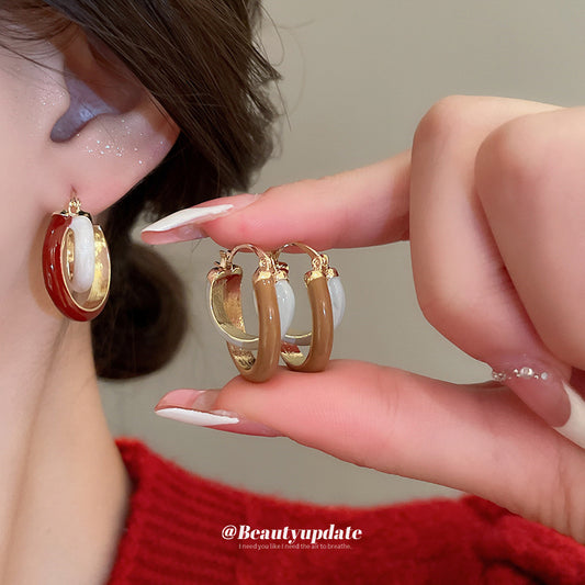 A廠【HE22800】安可拉紅雙層撞色滴油耳環簡約時尚氣質耳環歐美風氣質高級感耳飾 24.10-2