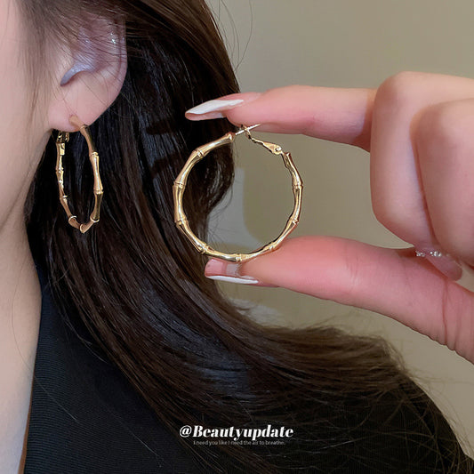 A廠【HE22817】925銀針金屬素圈竹節耳環耳環輕奢時尚氣質耳圈女耳飾小眾高級感 24.10-2