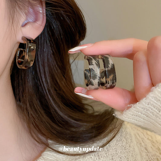 A廠【HE22802】韓國簡約復古C形豹紋耳環秋冬新品氣質耳環潮流個性設計感耳環女 24.10-2